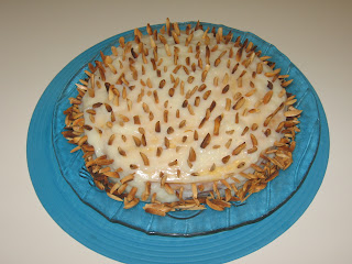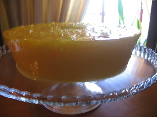 Asse por uma hora faça o teste do palito. Caso precise de mais tempo no forno cubra com uma folha de alumínio e asse por mais 15 minutos.(no meu caso não foi preciso). Deixe esfriar na forma. Enquanto o bolo ainda estiver quente, faça furos nele com um espeto de madeira.)