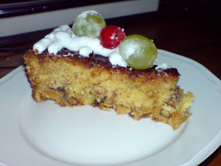 2-pré-aqueça o forno a 160ºC, unte uma forma alta de 20cm ou uma forma grande de anel para pudim)em uma panela aqueça o conhaque levemente. Apague o fogo acrescente o açafrão e deixe em infusão por alguns minutos. Em uma tigela bata a manteiga, o açúcar, os ovos, a farinha, e o sal até virar um creme. Misture as frutas as nozes, e as amêndoas com o conhaque com o açafrão (usei o Porto sem o açafrão). Misture bem, transfira a massa para uma forma untada.