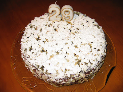 Dia 28 ou seja ontem a minha filha fez 29 anos. Eu fiz este bolo que retirei do livro (AS 100 MAIS FAMOSAS SOBREMESAS DO MUNDO). As fotos não ficaram muito boas mas o sabor ficou divino.