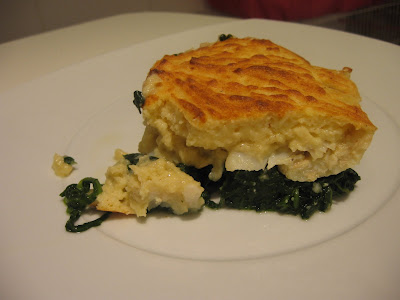 Tinha 1 pacote de filetes e não me apetecia fritos!!!Receita:600 gr de filetes limpos, 1 embalagem das grandes de espinafres congelados, 3,5 dl de leite,1 cebola, 3 ovos, 70 gr de margarina, 2,5 colh de (sopa) de farinha, noz-moscada, sal, pimenta .