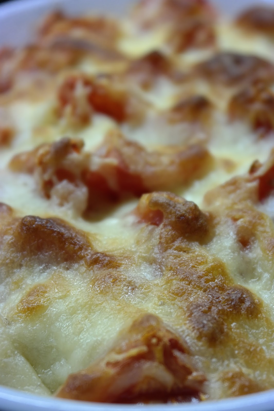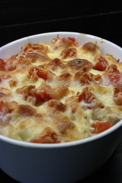 Notas: Como não resolvi fazer a lasanha tradicional, coloquei o tomate ao de cimo e que ficou bom, ficou. Se preferirem usem o molho Bechamel de compra, eu nunca usei, prefiro sempre fazer. Mas façam como acharem melhor. E pronto, num dia sem grande inspiração, e com a falta da massa, ou antes com o prazo caducado, saiu uma comida reconfortante. :)