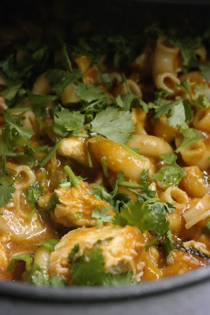 Limpei bem o peixe e cozi o mesmo num tacho com água, sal marinho e uma folha de louro. Quando cozido, retirei o peixe e coei a água de cozer o peixe e reservei. Quando o peixe estava arrefecido eliminei as espinhas (não as peles que adoro) e reservei o peixe. Num tacho de ferro, coloquei a cebola picada com o azeite e levei a lume brando até a cebola cozinhar e murchar. Nessa altura juntei a polpa de tomate e envolvi, na altura que começou a ferver refresquei com o vinho branco, de novo voltou a ferver juntei a água reservada de cozer o peixe. Quando levantou fervura juntei os cotovelos e um pouco de coentros picados, envolvi e deixei cozinhar a massa até ficar al dente, temperei com a pimenta cayene, nessa altura juntei o peixe reservado e rectifiquei o sal (não esquecer o sal de cozer o peixe que a água tinha), envolvi e deixei o tacho tapado durante 2 minutos o tempo de harmonizar sabores, desliguei o lume e deixei o tacho tapado até à hora de servir, quando servi polvilhei com o resto de coentros picados.